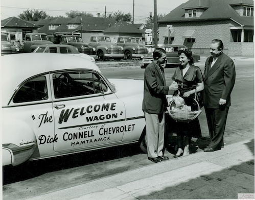 Description: Connell Chevrolet was part of “Automobile Row” that defined Jos. Campau north of Caniff. It operated its own Welcome Wagon.