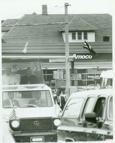 Description: Security agents walked alongside Pope John Paul II as he rode into Hamtramck