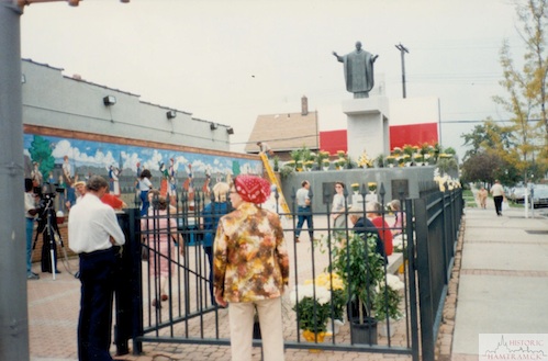 Description: Pope Park at Jos. Campau and Belmont was decorated for Pope John Paul’s visit on Sept. 19, 1987. Because of security concerns, however, the pope did not stop at the park