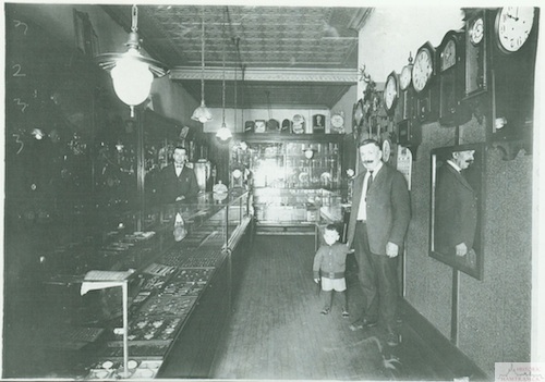 Description: Ancinec Jewelry, 9631 Jos. Campau, was one of the finest jewelry stores in Hamtramck. Henry Ancinec, Sr., is at left. Henry, Jr., age 3, stands with his uncle, Frank