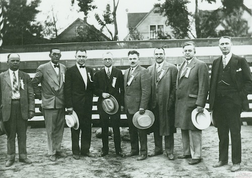 Description: The photo is believed to be the planning committee formed to mark the 100th anniversary of the creation of the third Hamtramck Township in 1827. The man on the far right is School Superintendent Dr. Maurice Keyworth