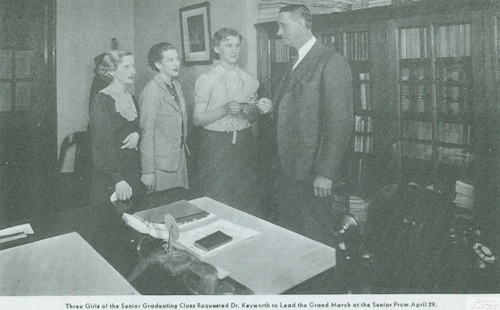 Description: School Superintendent Dr. Maurice Keyworth greets members of the graduating class of 1929. Keyworth revolutionized the school system in Hamtramck, instituting programs that were adopted in schools across the U.S. and even three universities in the Soviet Union. He left the school district in 1935 and was elected state school superintendent. He was killed shortly afterward in an auto accident in the Upper Peninsula
