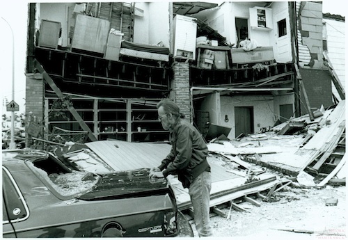 Description: The power of the tornado that swept through Hamtramck in July 1997 is shown with the buildings that were nipped apart.