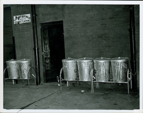 Description: A solution to the city’s persistent trash and rat problem was proposed in the late 1950s when everyone was required to have metal trash cans with lids on raised platforms.
