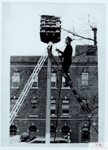 Description: The large birdhouse was a landmark at St. Francis Hospital and city hall for many years until it was knocked down by a windstorm.