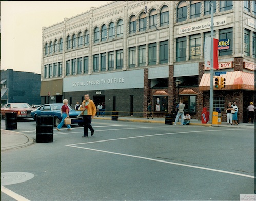 Description: Barrels were placed along Jos. Campau at Holbrook in September 1987 for the visit of Pope John Paul II.