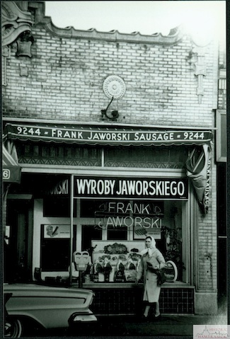 Description: Frank Jaworski Sausage was one of the longest-lasting stores in Hamtramck. This photo was taken in 1965, some 50 years after the first Jaworski store opened.