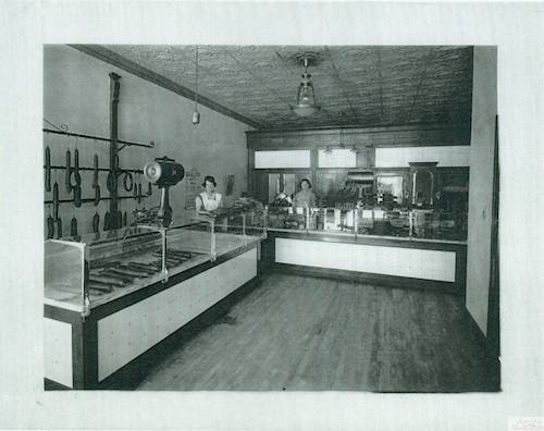Description: Jaworski Sausage store in 1915 offered traditional Polish meats. Note the tin ceiling. Many examples of those ceilings remain.