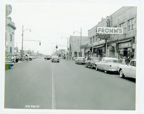 Description: Fromm’s was a popular hardware store on Jos. Campau in the 1950s. Just north of it is one of the Cunningham’s drug stores. An identical store stood at the corner of Holbrook and Jos. Campau.