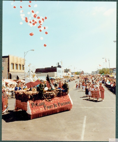 Description: Colorful floats and balloons were evident in one of the Polish Day Parades held on Labor Day in the early 1990s.