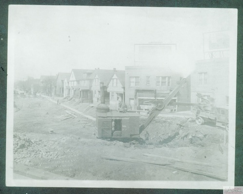 Description: Construction of the Jos. Campau viaduct took place in 1927 with early, barn-like, steam shovels.