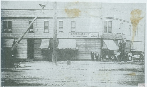 Description: Muenchinger’s (saloon) restaurant on Jos. Campau at the railroad tracks near the present-day viaduct was the center of power in Hamtramck village. The building also housed the Kraft post office