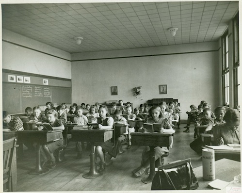 Description: A typical classroom at Copernicus Junior high School. Note that the students have individual desks and the class is fully integrated