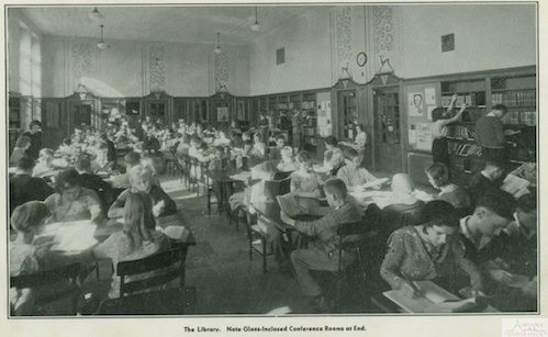 Description: The library at Copernicus Junior High School was spacious and fully stocked.